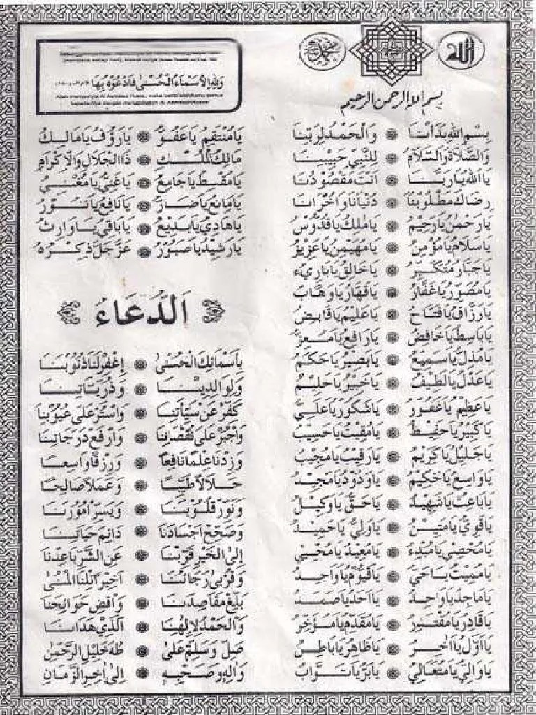 Teks nadhom asmaul husna latin arab dan terjemah .